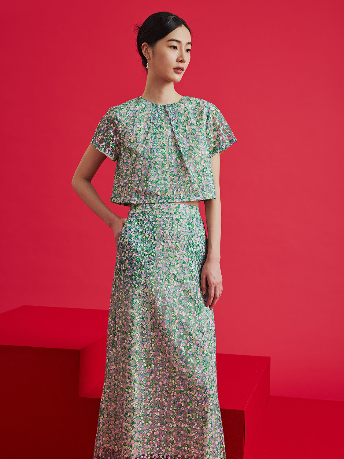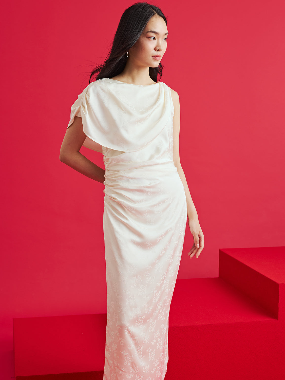 floral lace and textured jacquard by designing them in modern, fresh silhouettes.