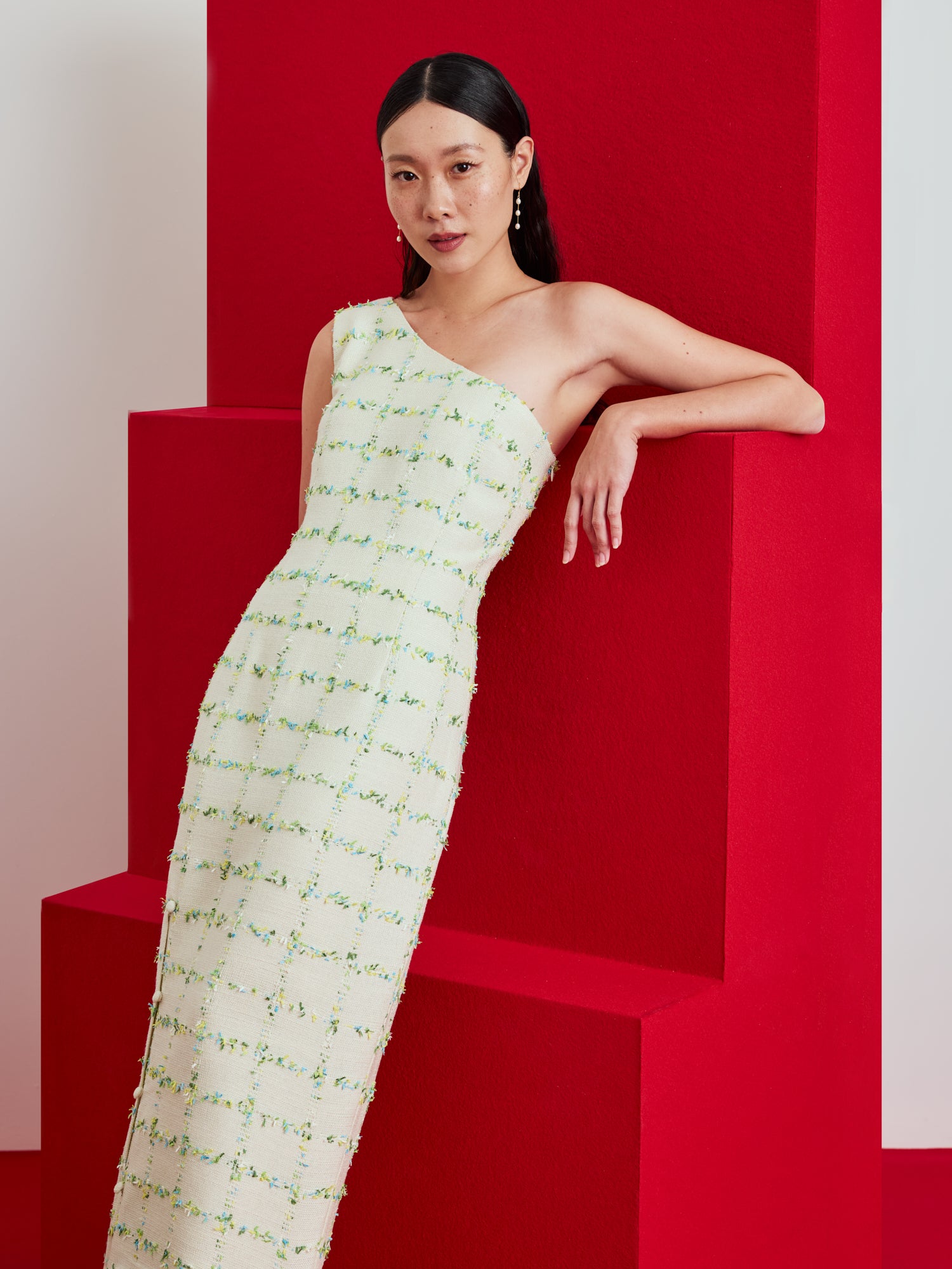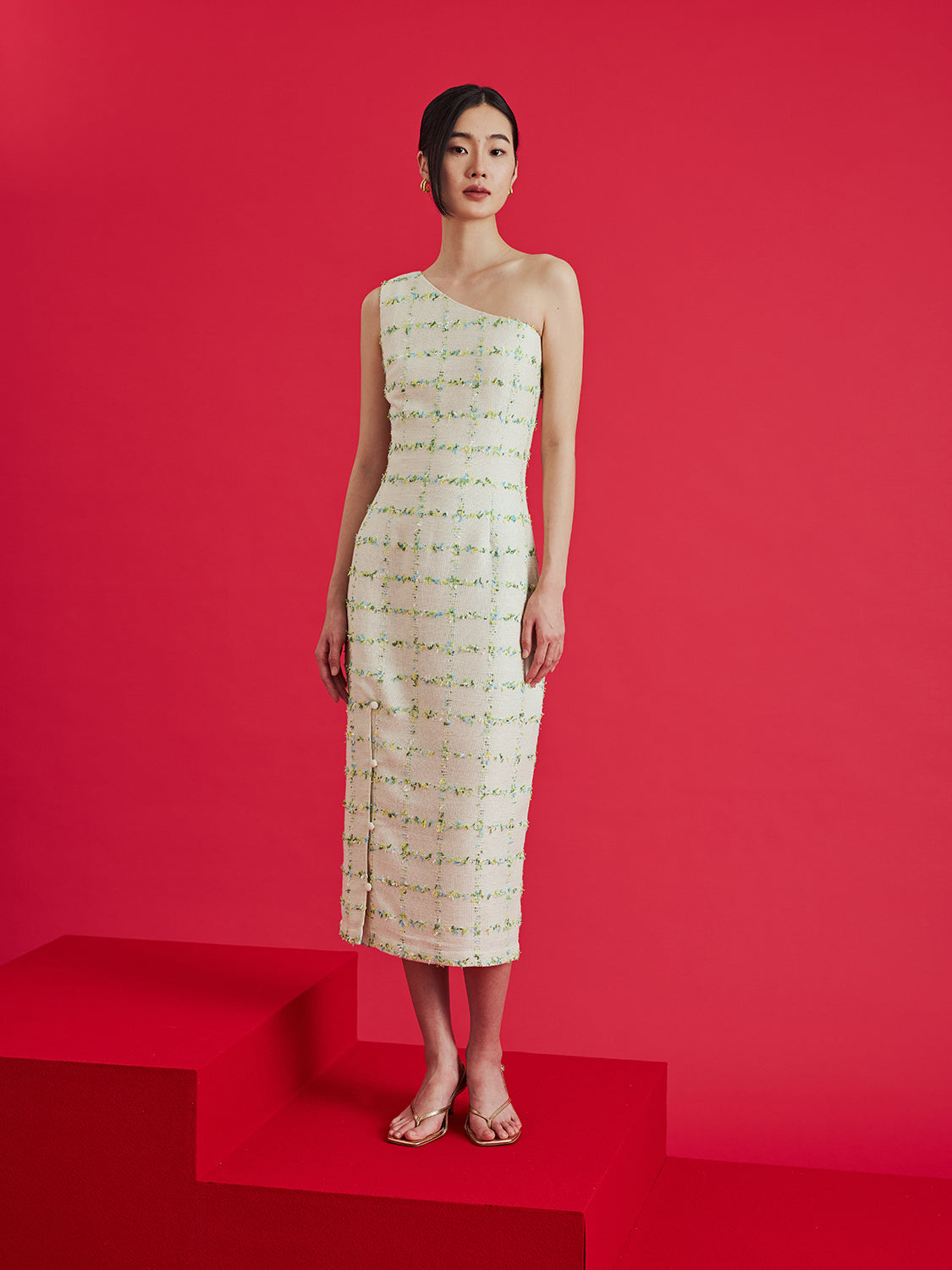 One Shoulder Tweed Dress $165
