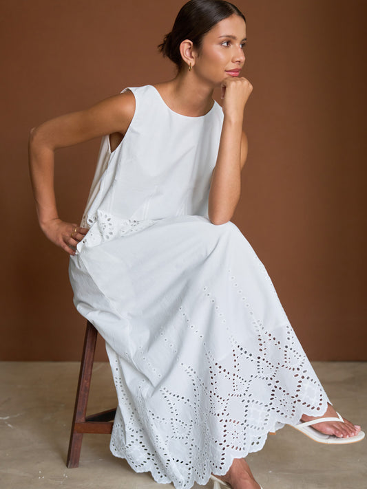 Broderie Cami Midi Dress - Gardenia - Broderie White