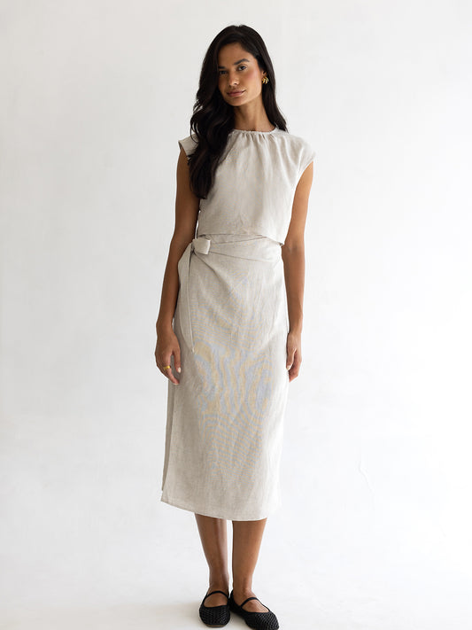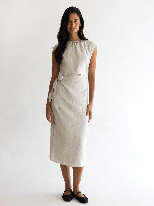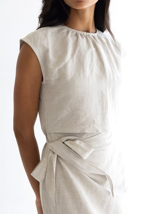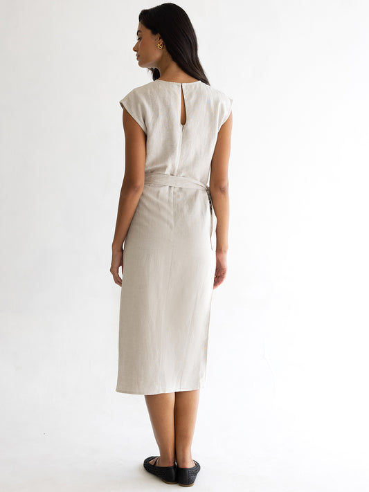 Mandarin V-Neck Kaftan Dress - Gardenia - Green