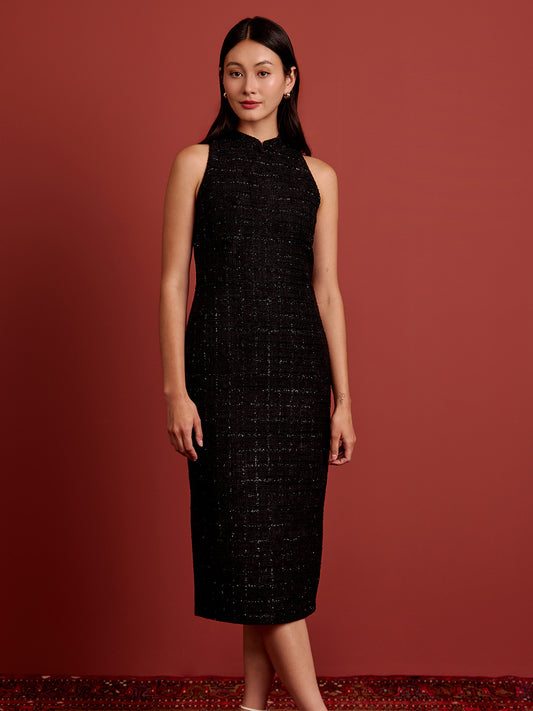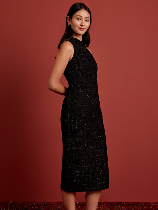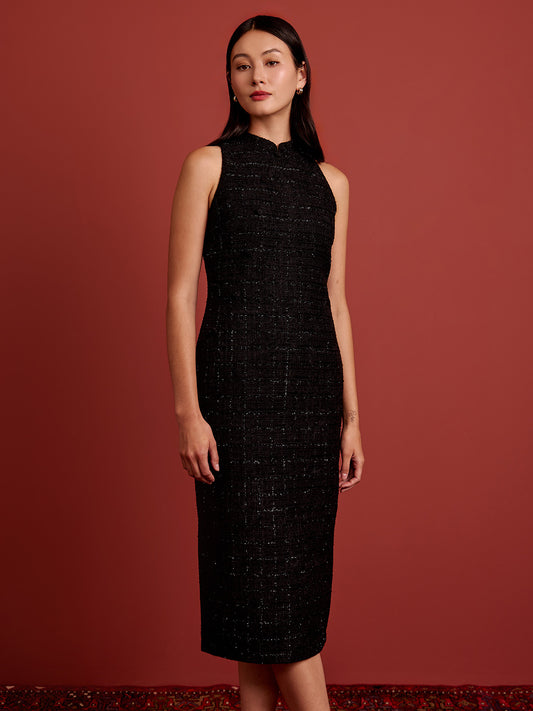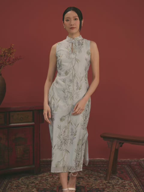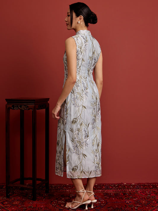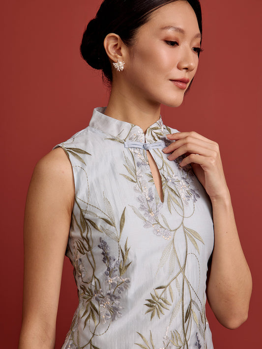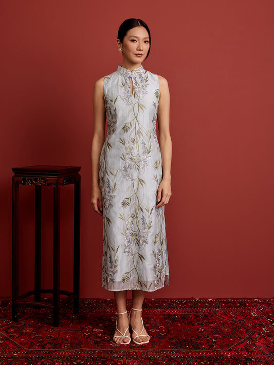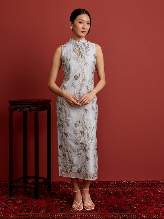 Shift Midi Cheongsam - Embroidery - Blue Floral Embroidery