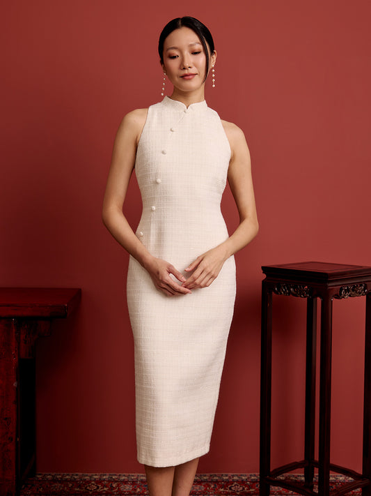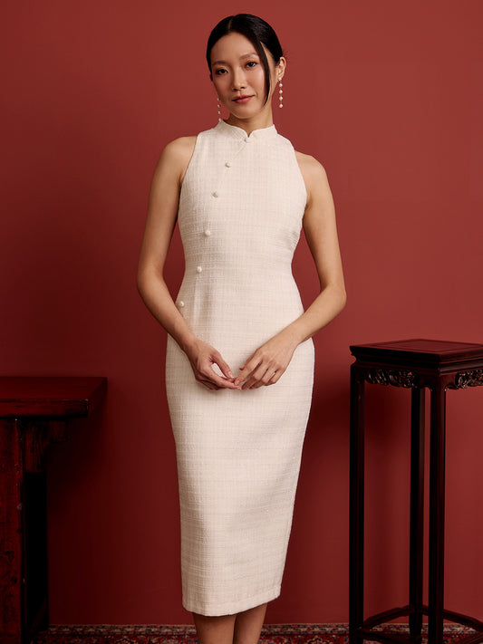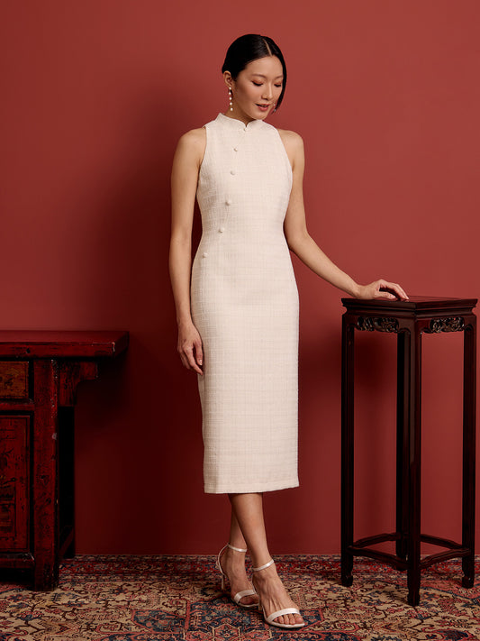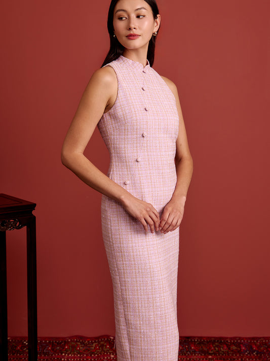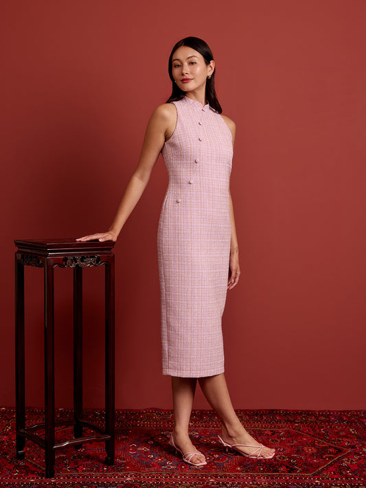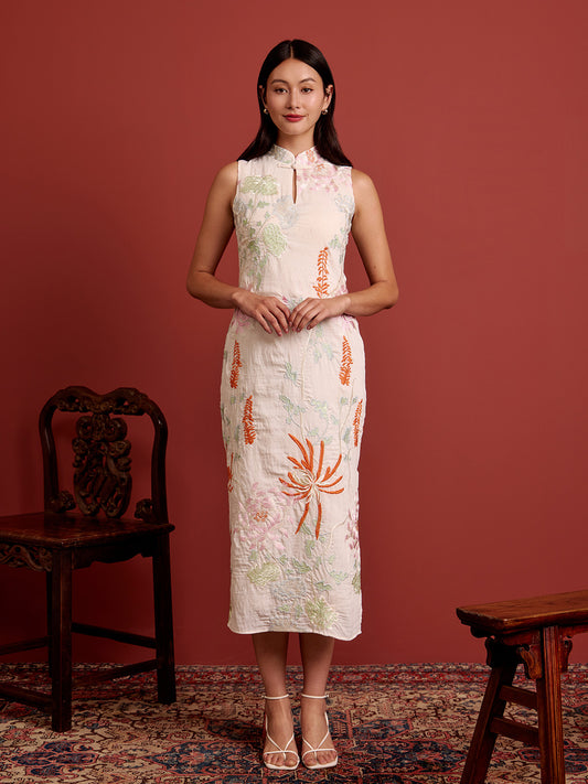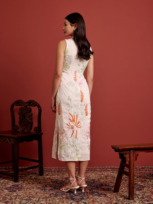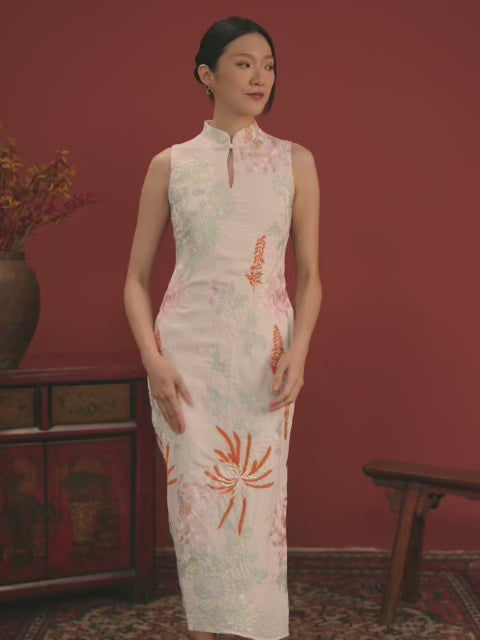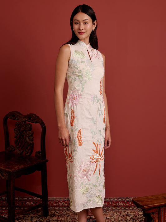 Shift Midi Cheongsam - Embroidery - Pink Orange Embroidery