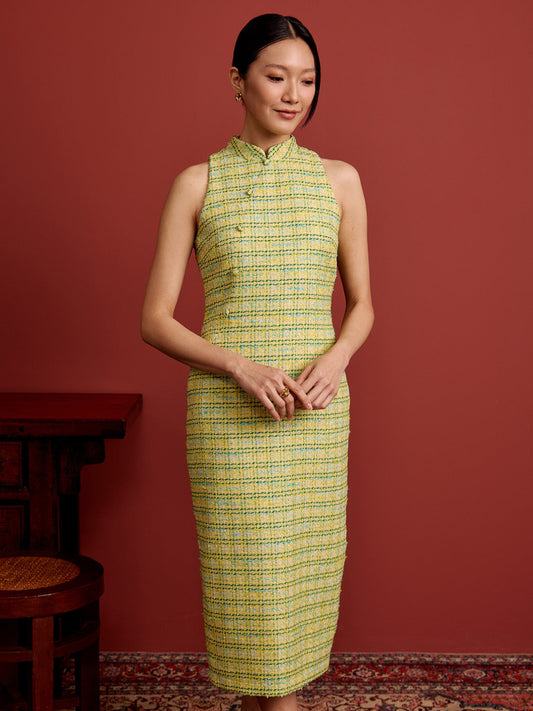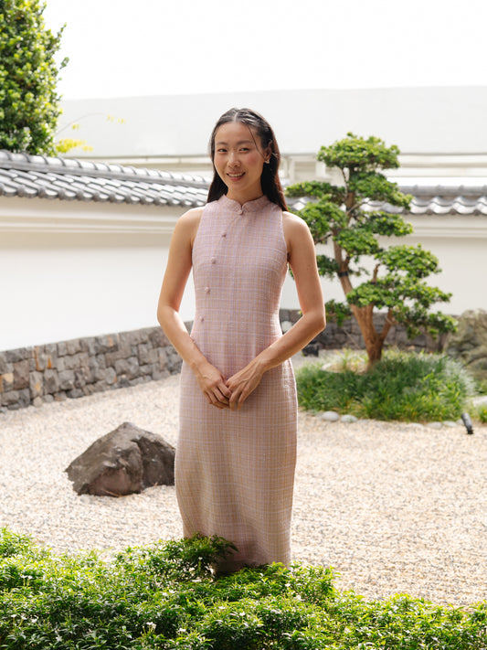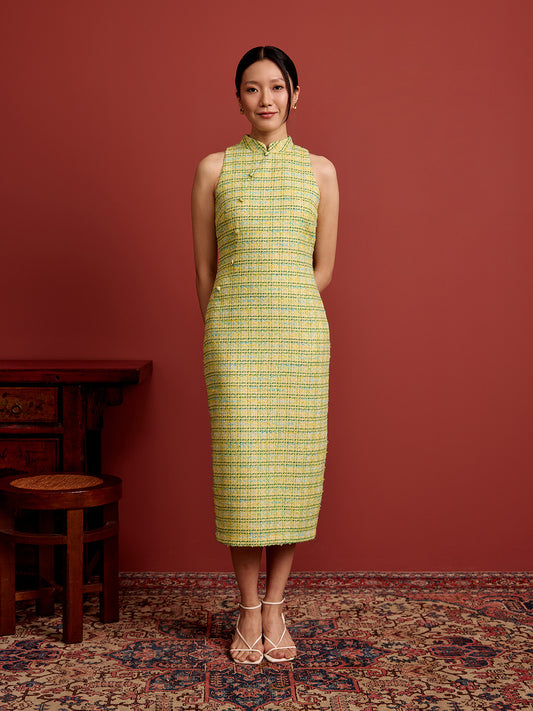 Sleeveless Shift Dress - Gardenia - Blue Yellow Check