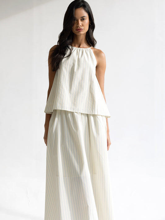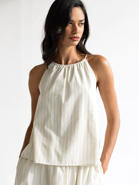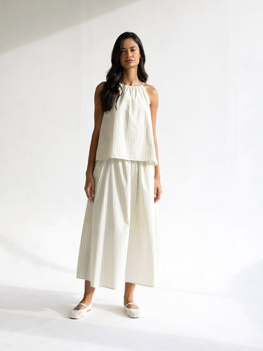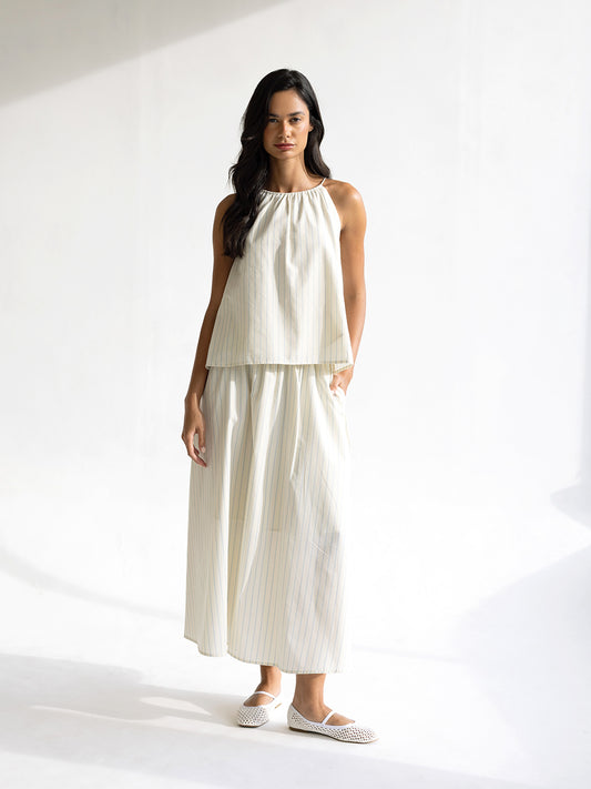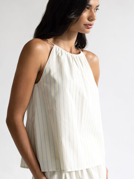 Signature Shirt - The Deep Blue - Lightweight Beige Red Stripe