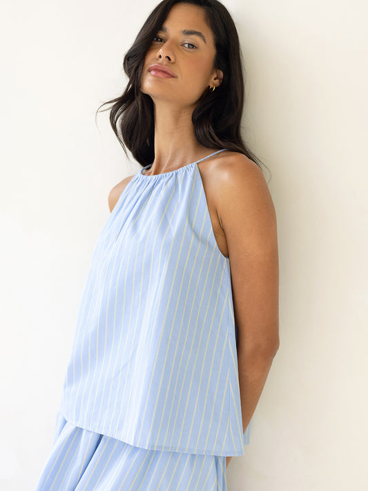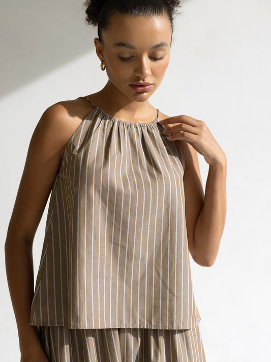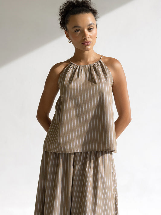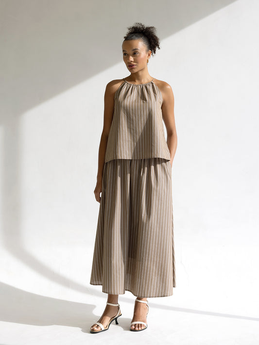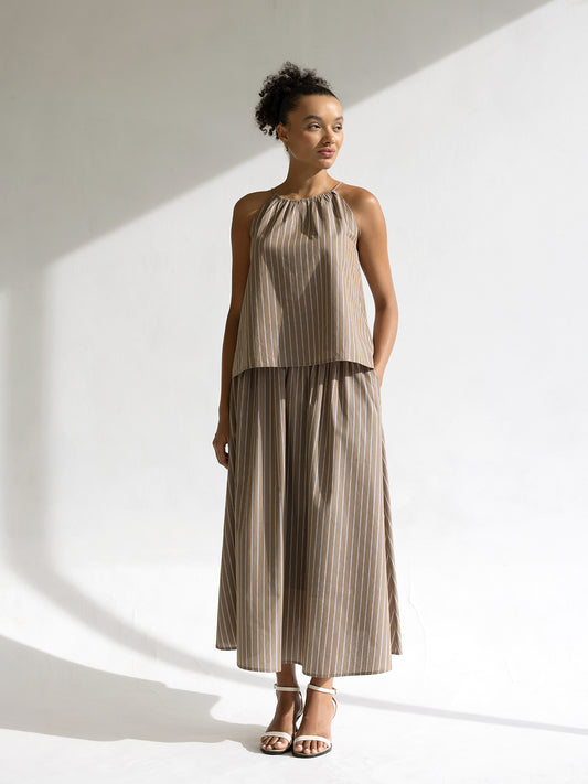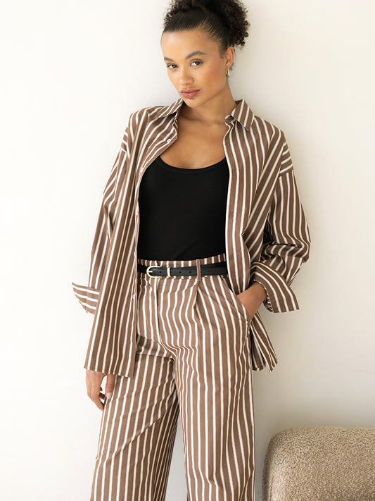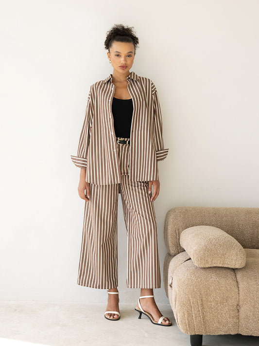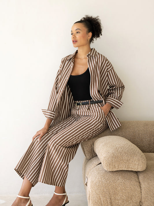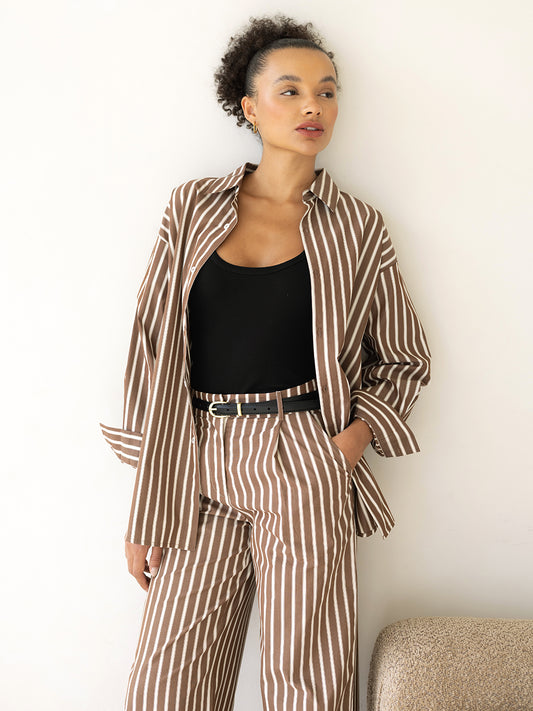 Signature Shirt - The Deep Blue - Brown White Stripe