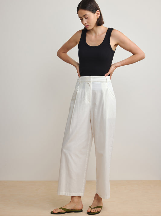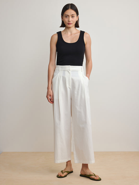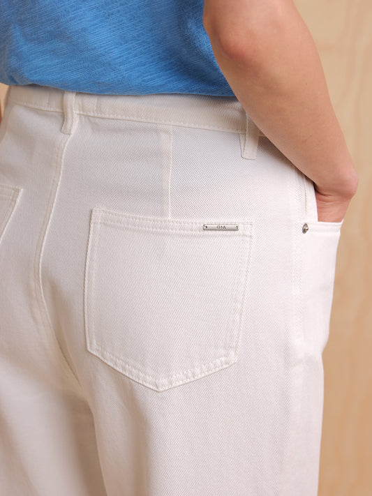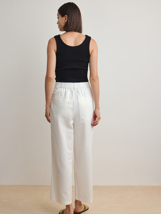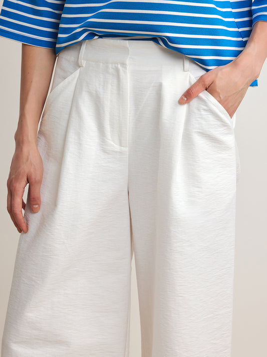Straight Cut Cotton Trousers - White