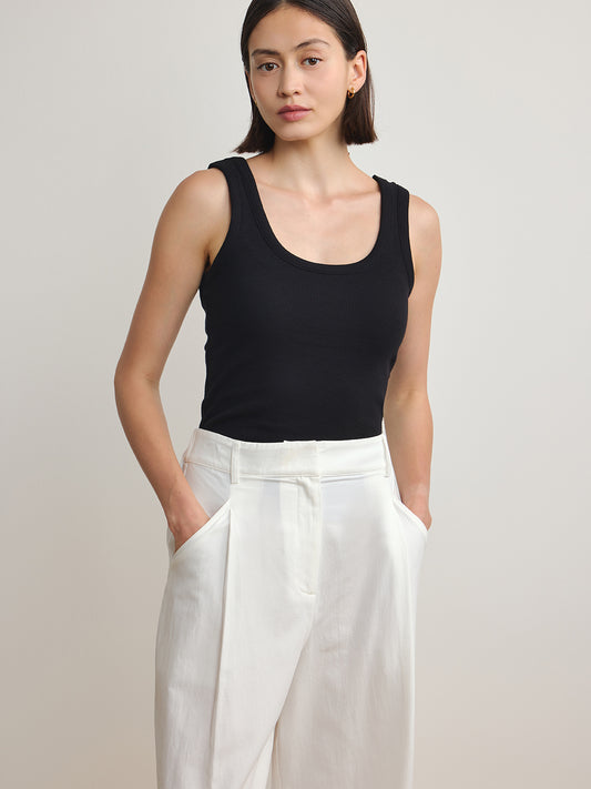 Ribbed Knit Scoop Tank - Always On - Black