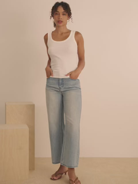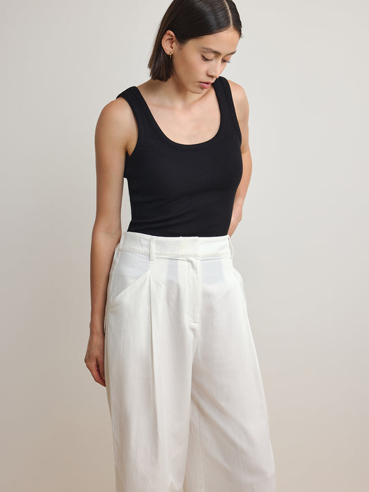 Ribbed Knit Scoop Tank - Always On - White