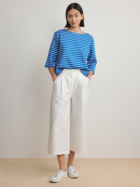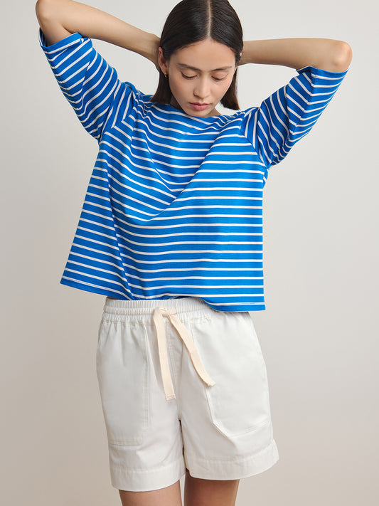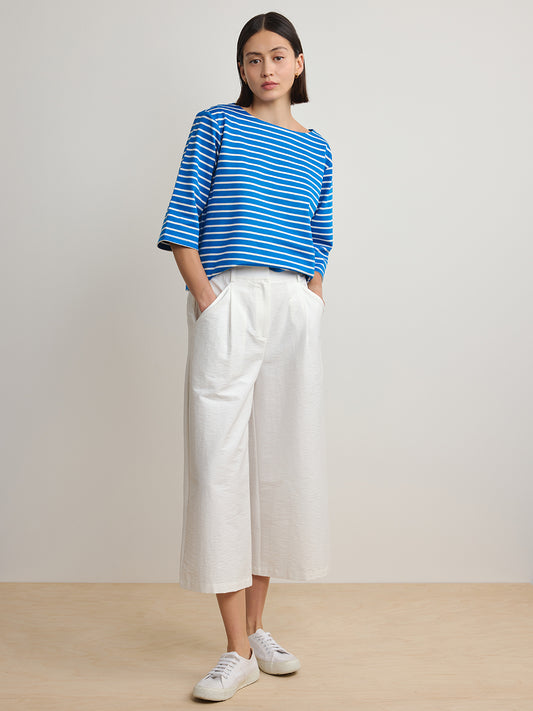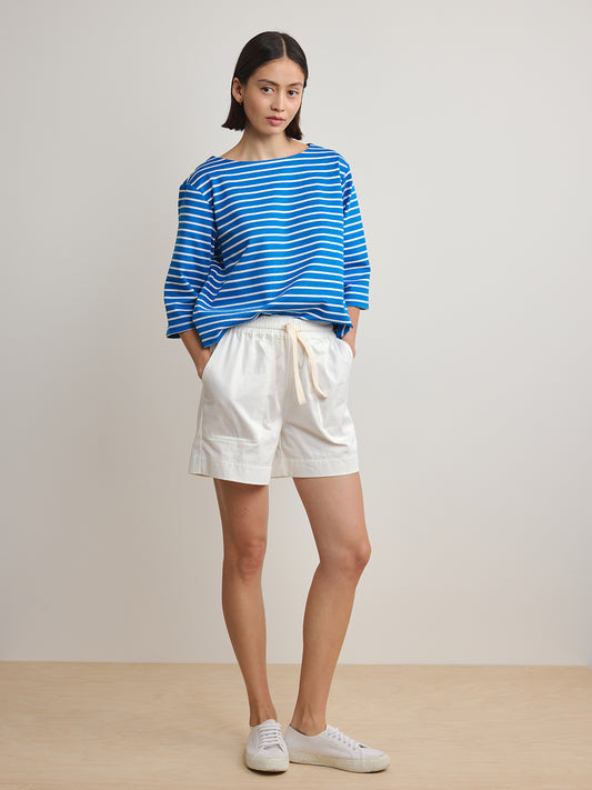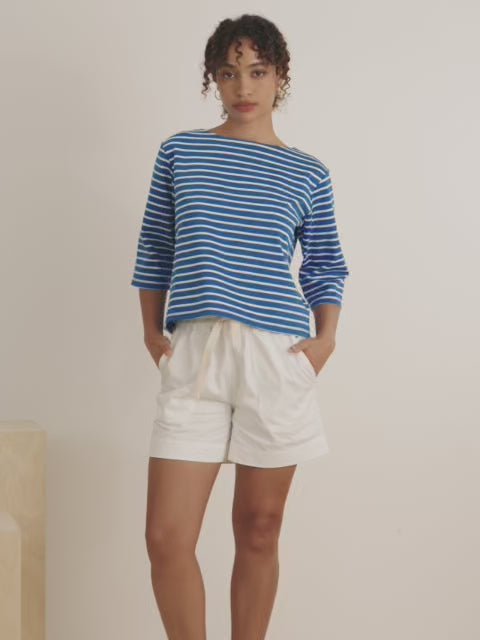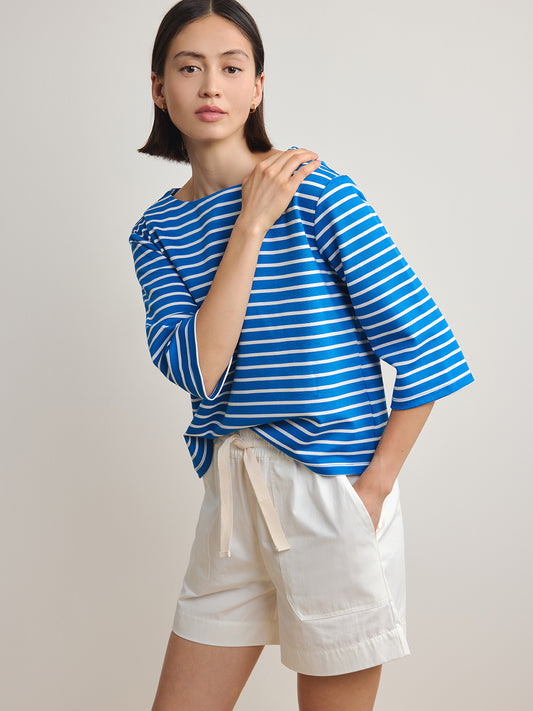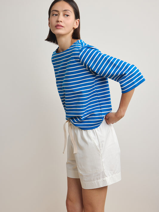 Striped Boat Neck Top - Blue White Stripe