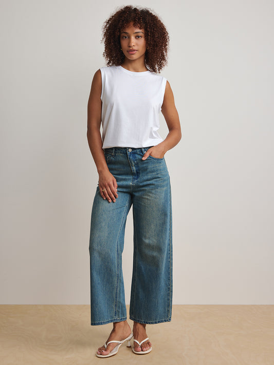 Boxy Muscle Tank - Always On - White Slub Jersey