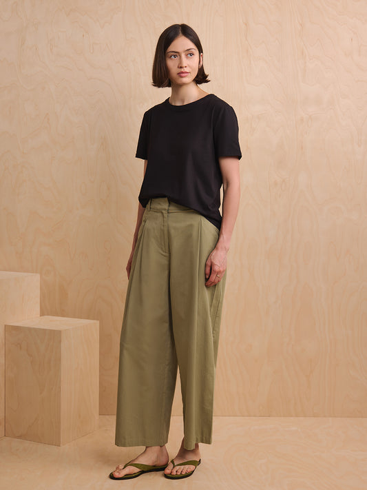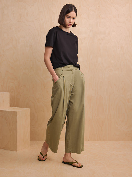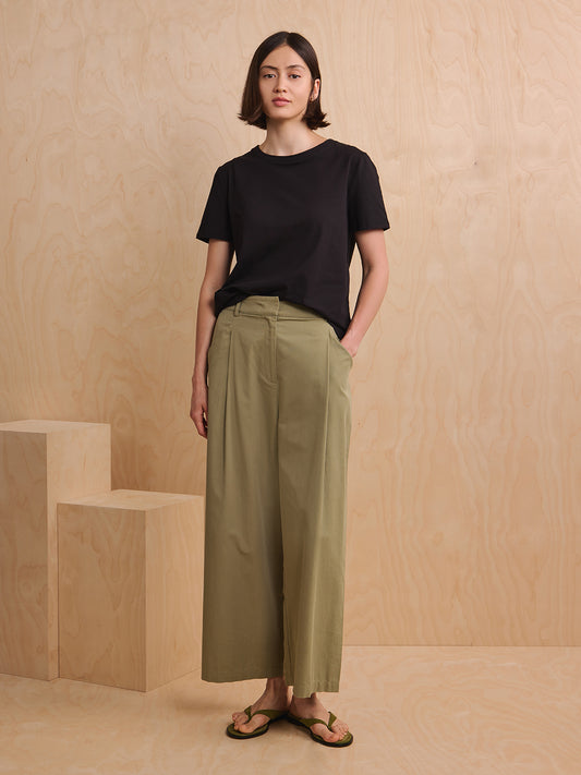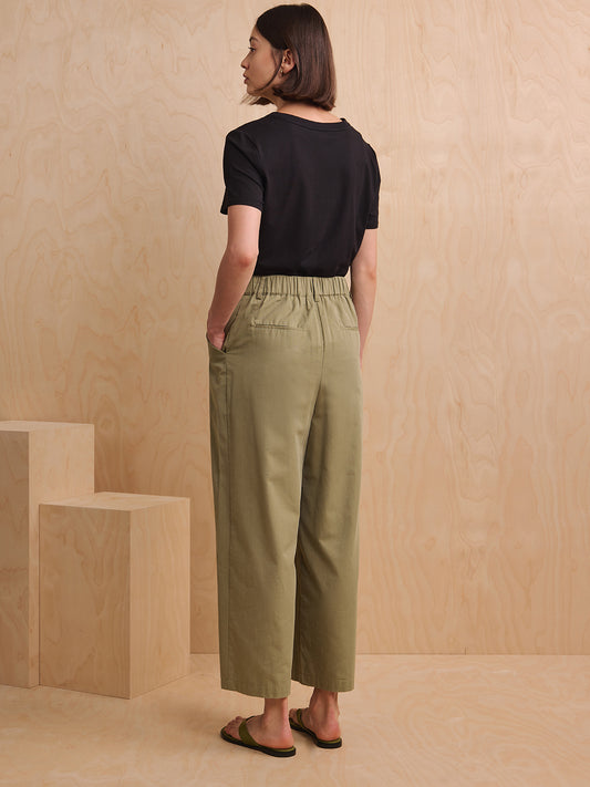 Straight Cut Cotton Trousers - Khaki Green