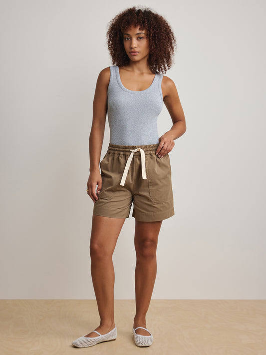 Boxy Muscle Tank - Always On - Khaki Green Slub Jersey