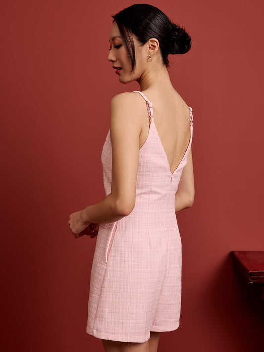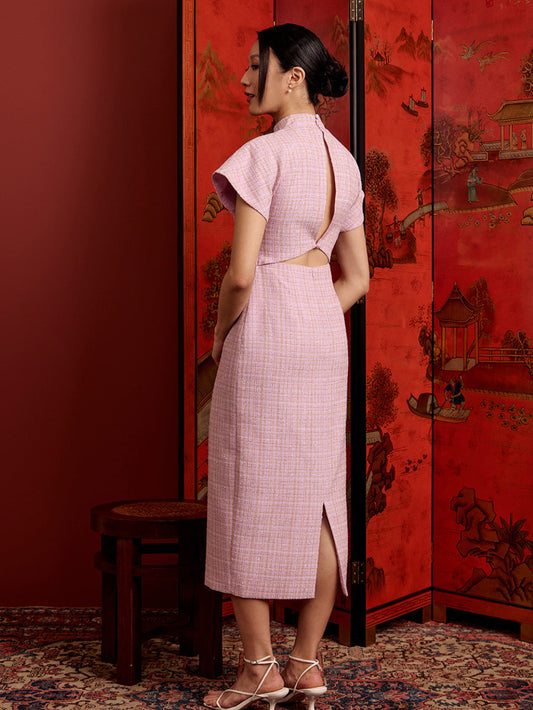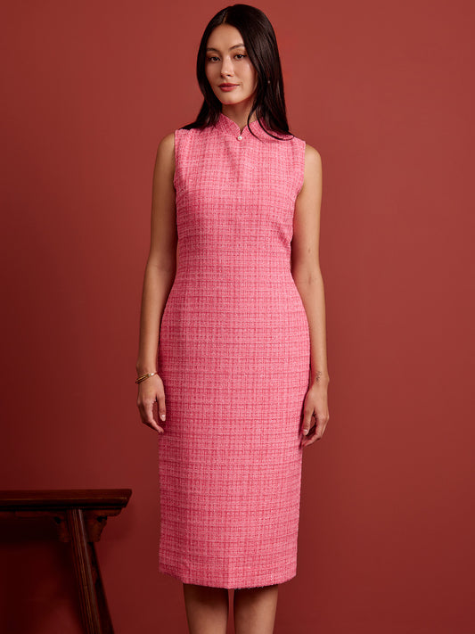 Padded Oval Open Back Cheongsam - Barbie Pink Tweed