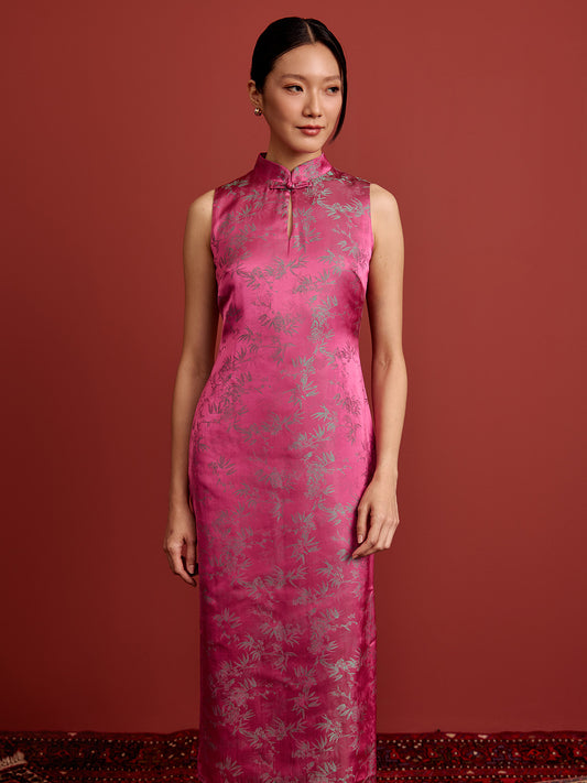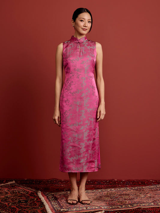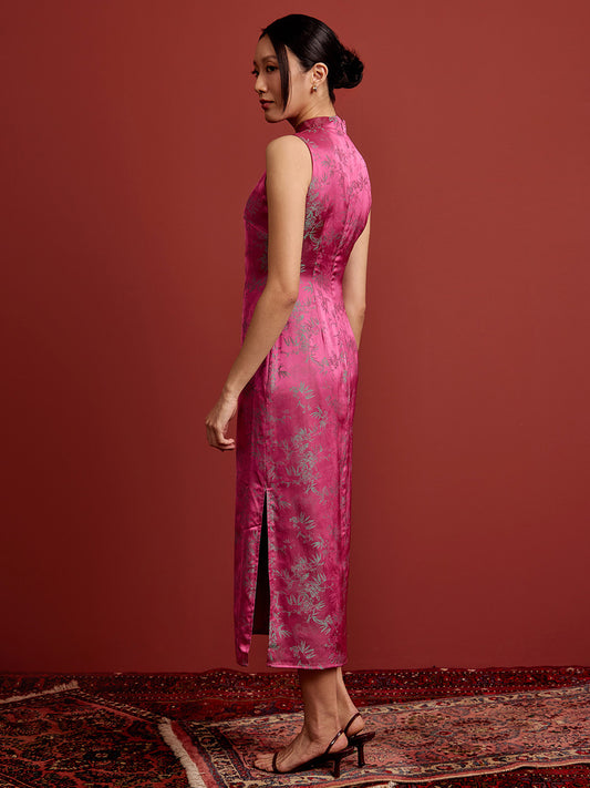 Shift Midi Cheongsam - Brocade - Pink