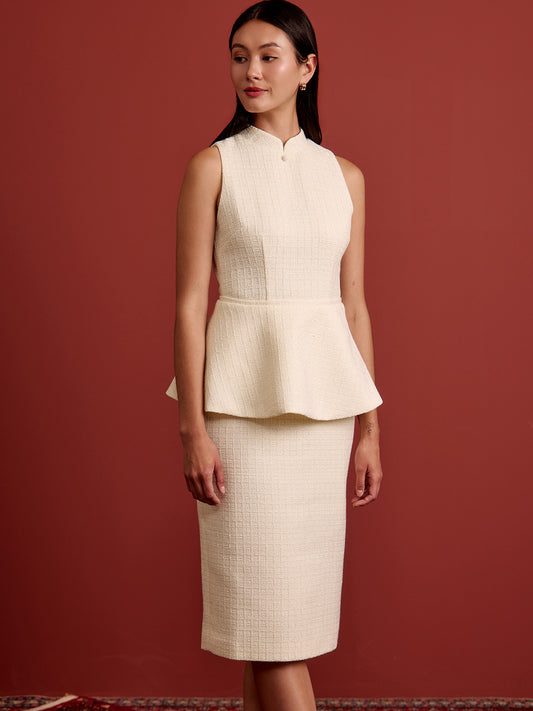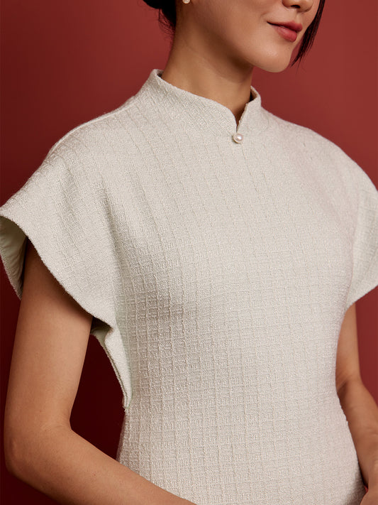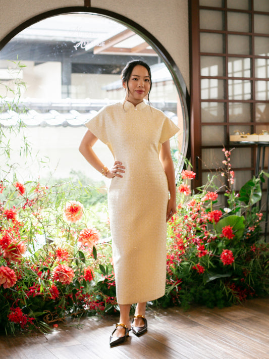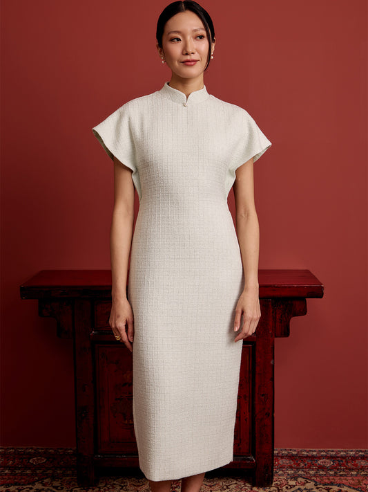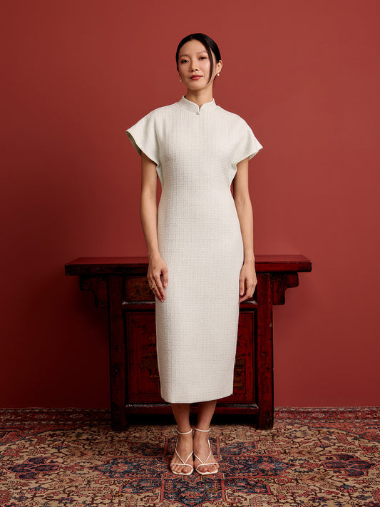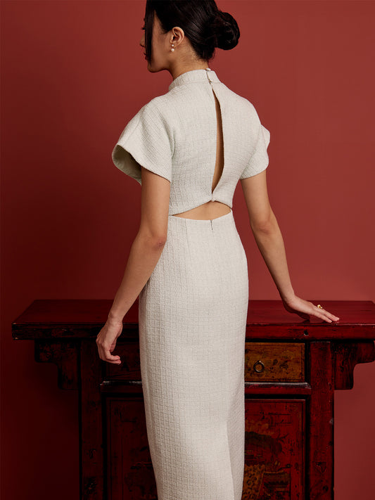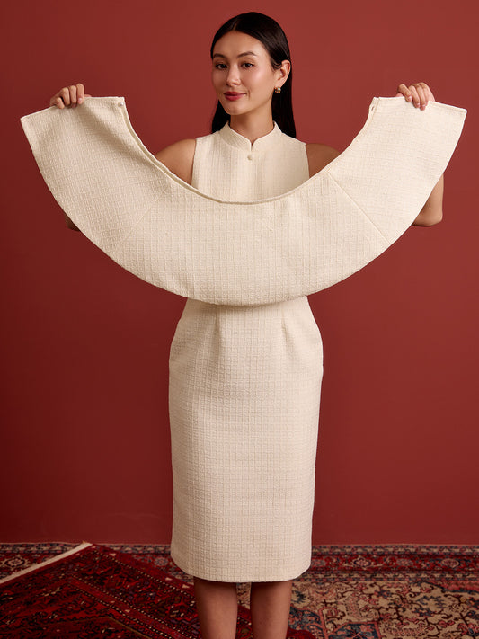 Multi-Way Cape Cheongsam - Cream Tweed