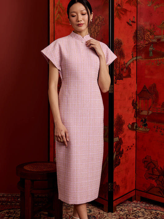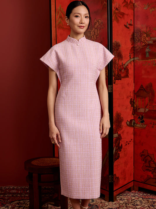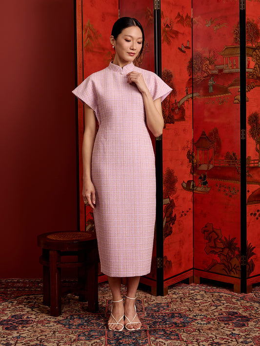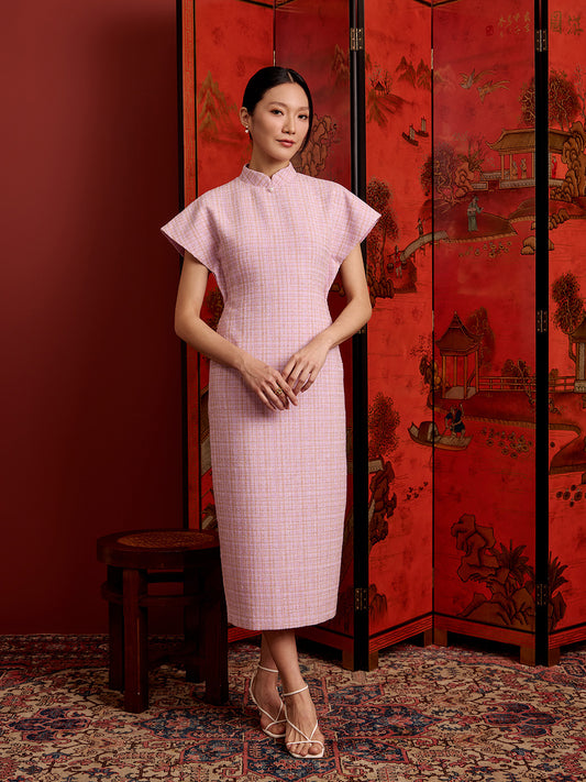 Multi-Way Cape Cheongsam - Light Pink Tweed
