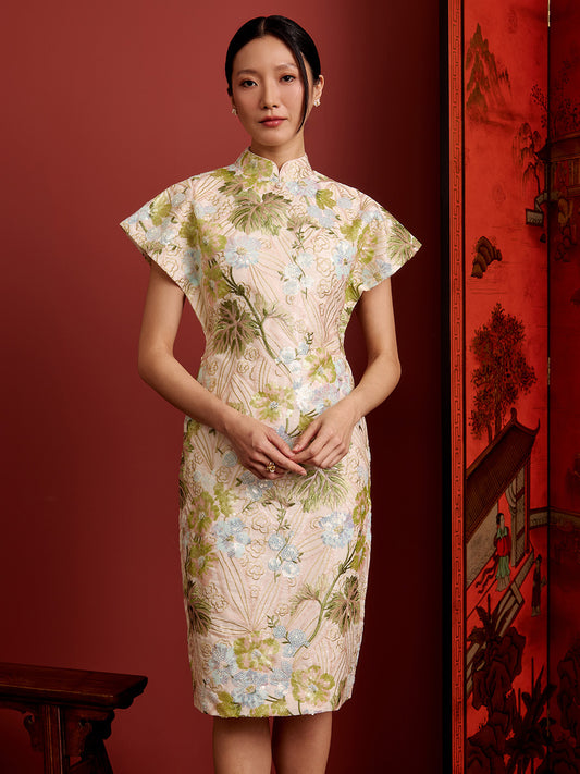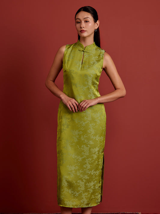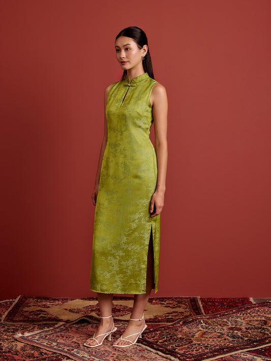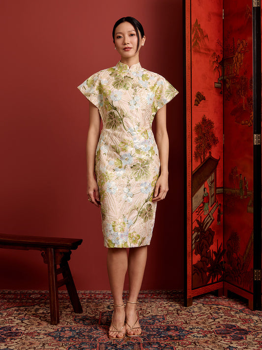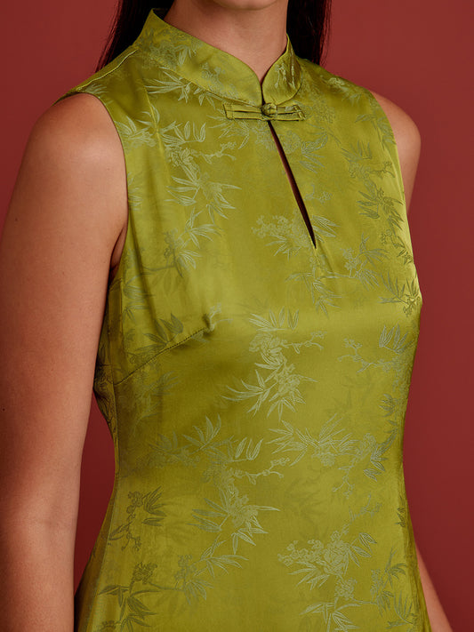 Shift Midi Cheongsam - Brocade - Green