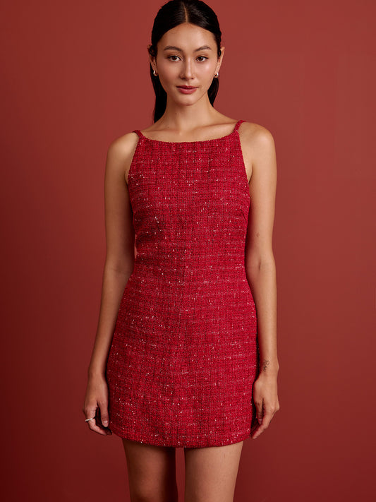 Padded Tweed Skort Romper - Red Tweed