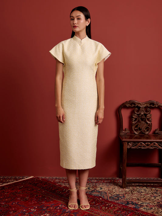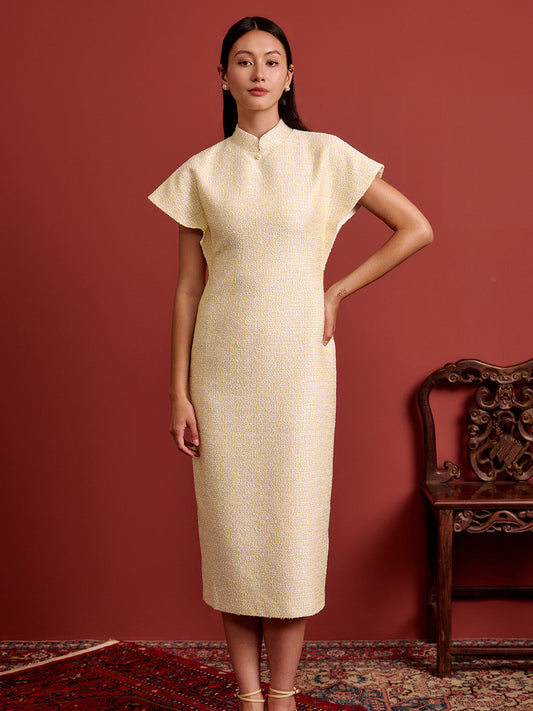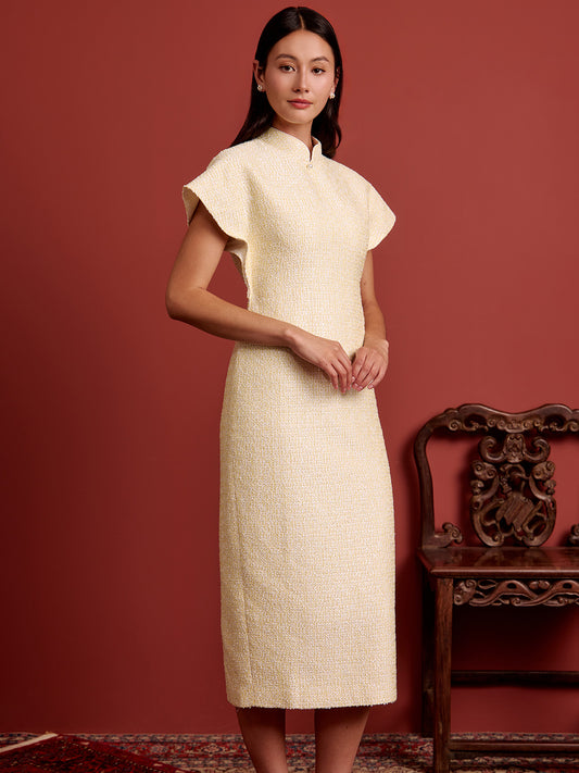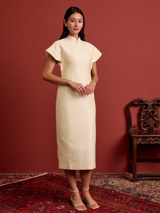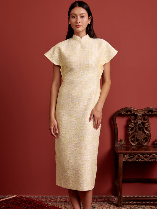 Multi-Way Cape Cheongsam - Canary Yellow Tweed