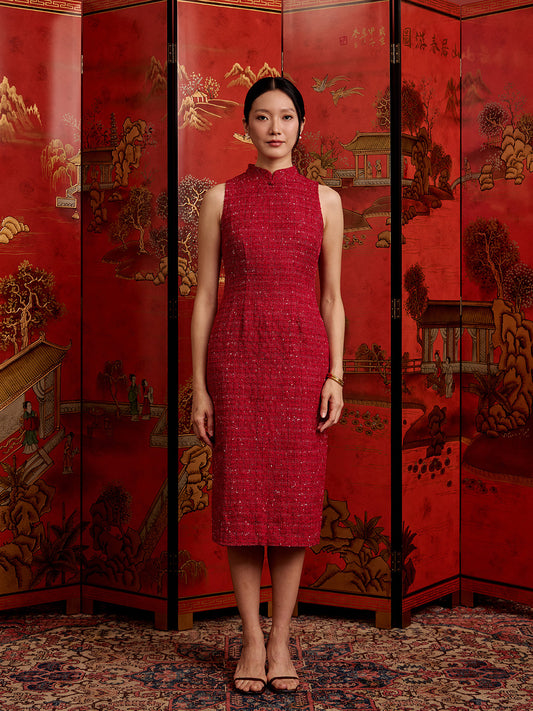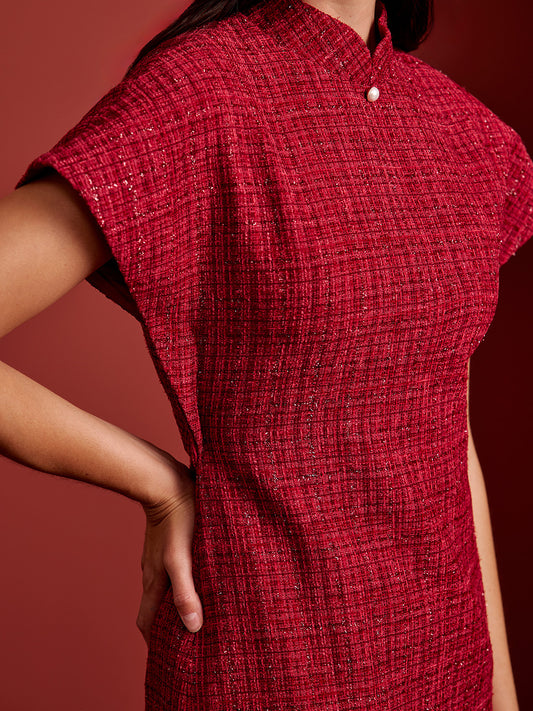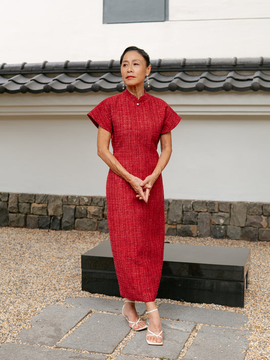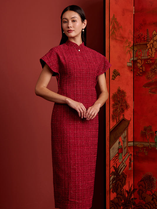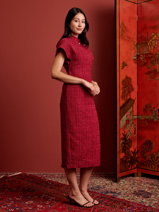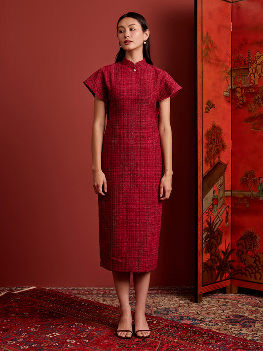 Multi-Way Cape Cheongsam - Red Tweed