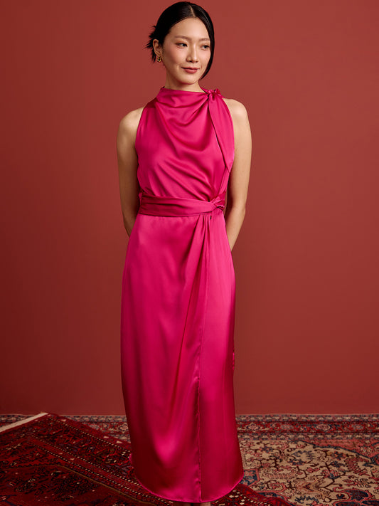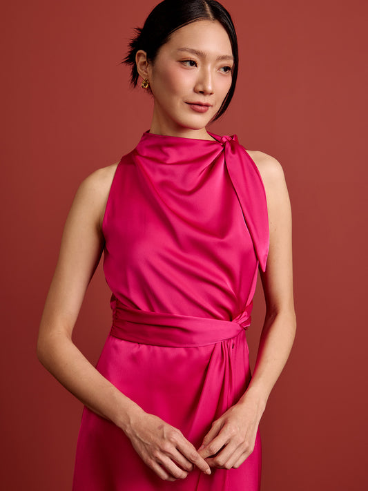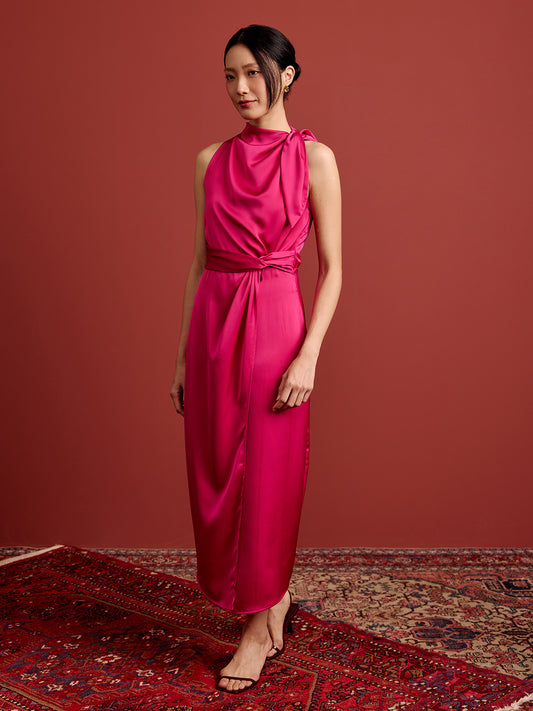 Halter Neckline Cheongsam - Barbie Pink Tweed