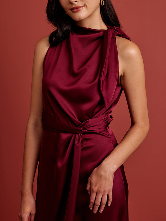 Halter Neckline Cheongsam - Black Pearl Beaded
