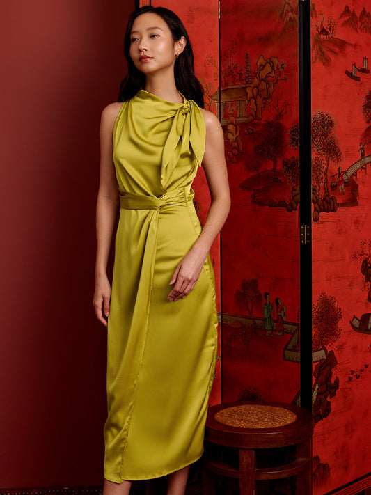Halter Neckline Cheongsam - Canary Yellow Tweed