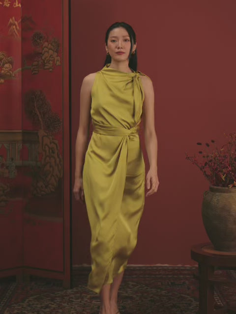 Crepe Asymmetrical Toga Top - Chartreuse Green