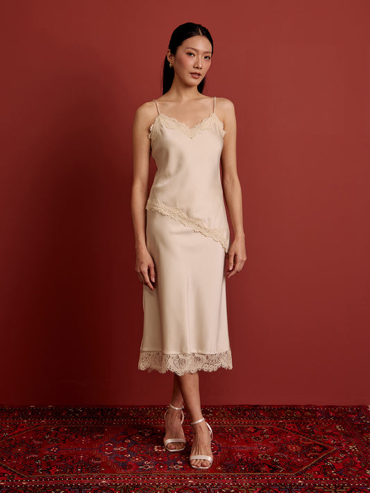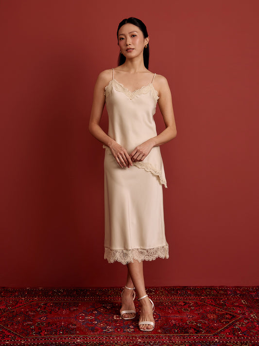 Lace Cami Asym Top - Cream