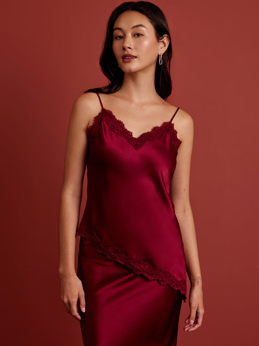 Lace Cami Asym Top - Burgundy