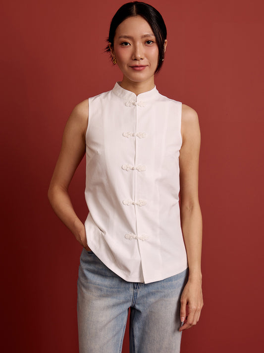 Pankou Sleeveless Top - White