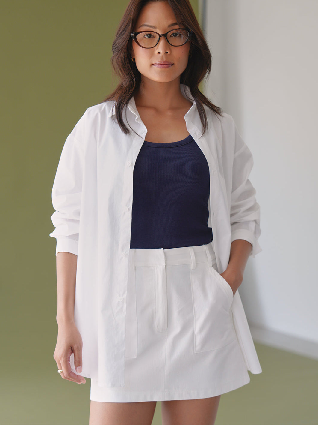 + Relaxed high-waist fit, in a mini skort length