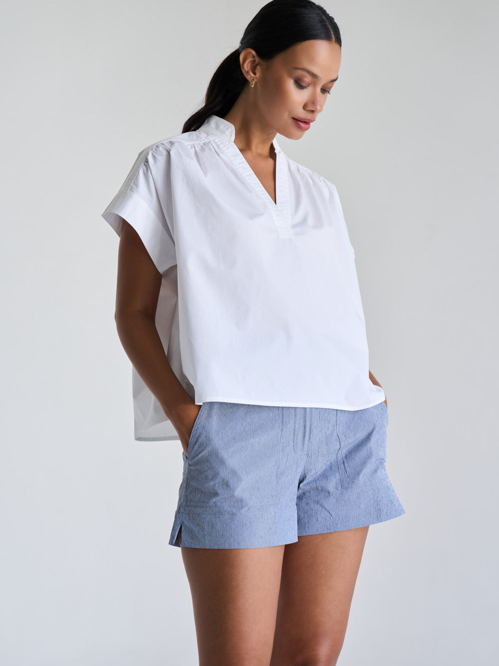 + Available in crisp cotton poplin and textured seersucker colourways