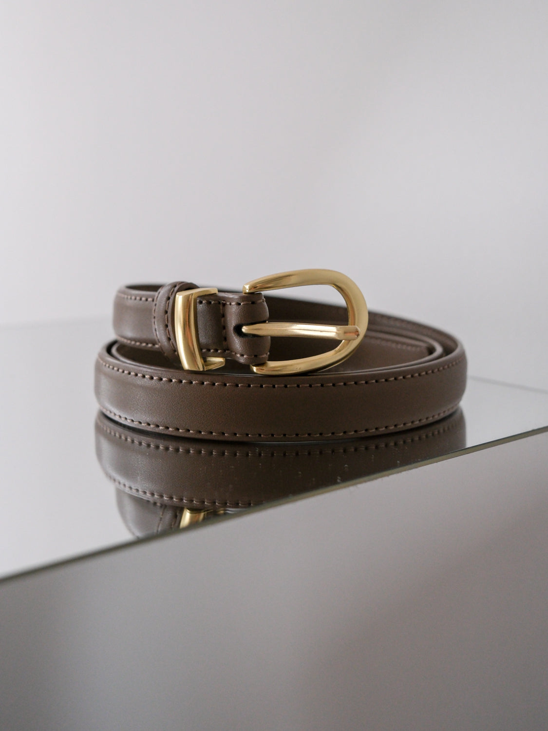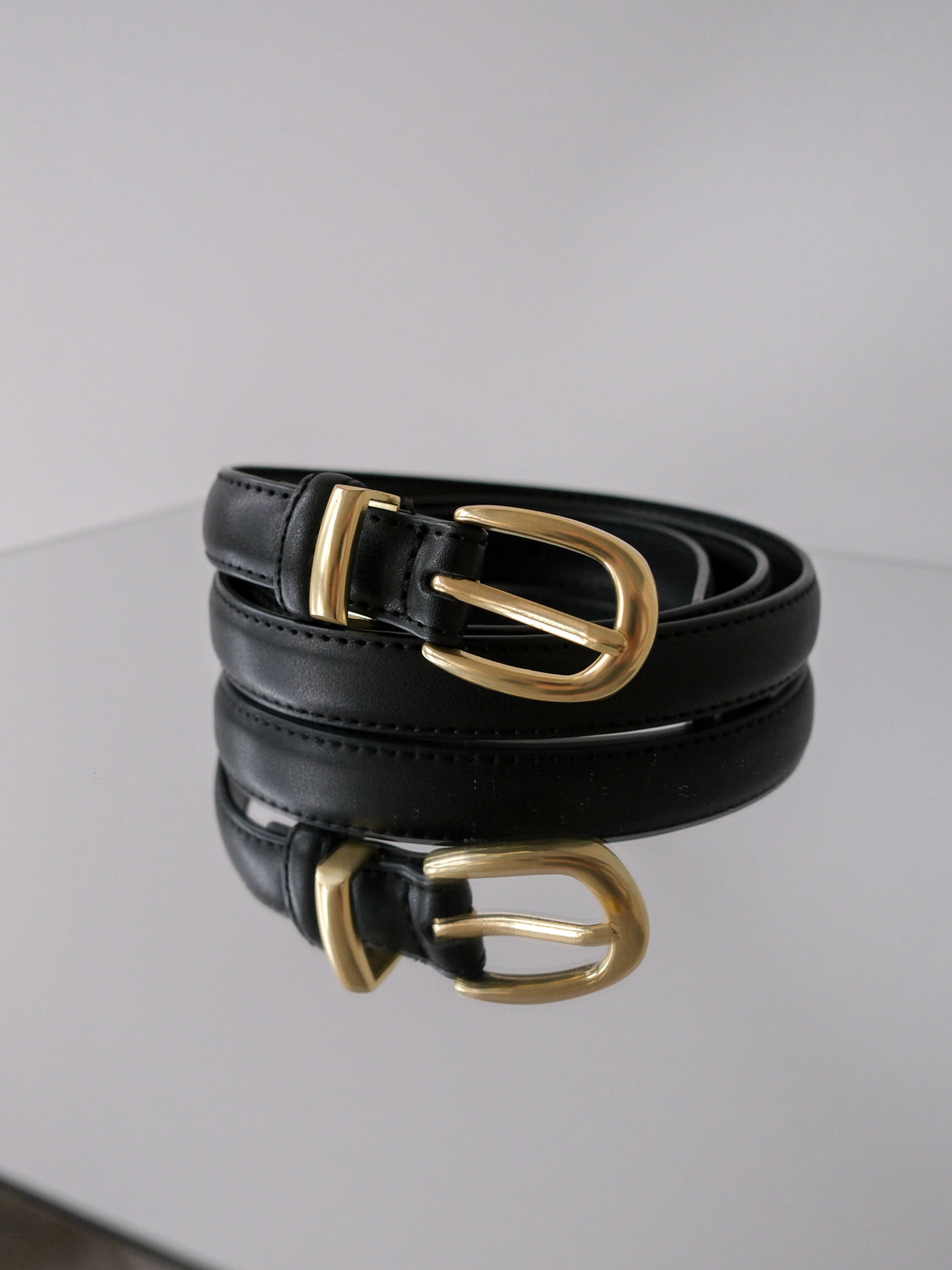 The perfect finishing touch to any outfit is a good belt. The G+A leather belt is crafted from a smooth calf leather and designed in a slim silhouette that threads easily through the loops of any bottom. Finished with semi-matte gold-tone hardware and embossed with the Good Addition logo on the underside. Loop it through our Tailored Pants or Midi Skirt or layer it over a Signature Shirt. Comes in 3 classic shades of Black, Brown and Green.