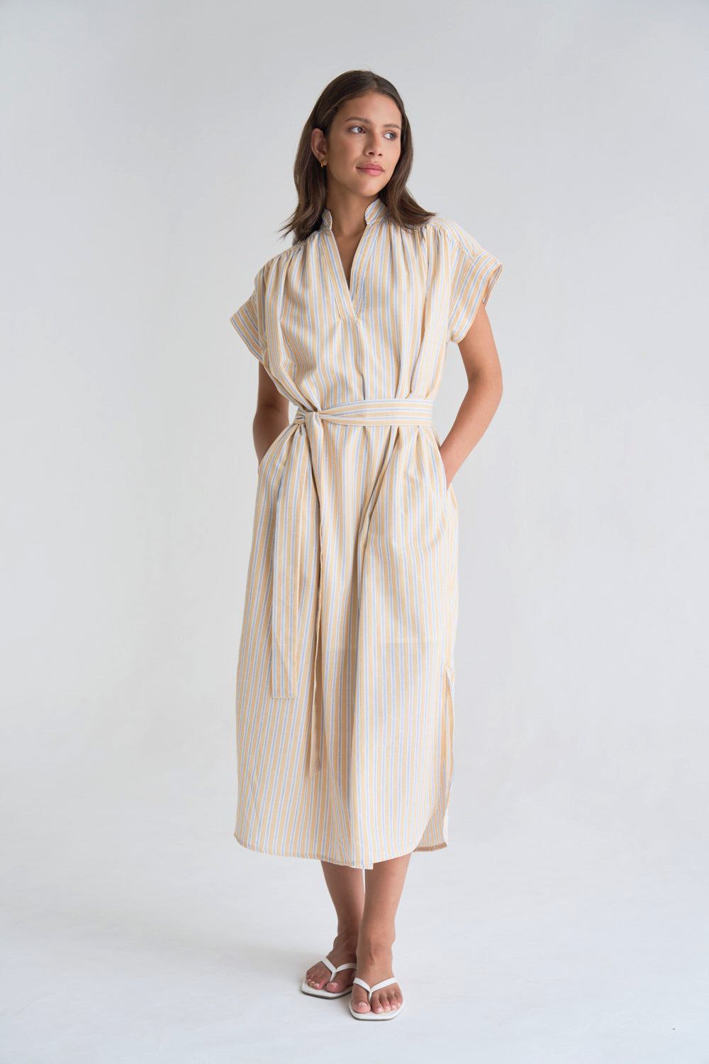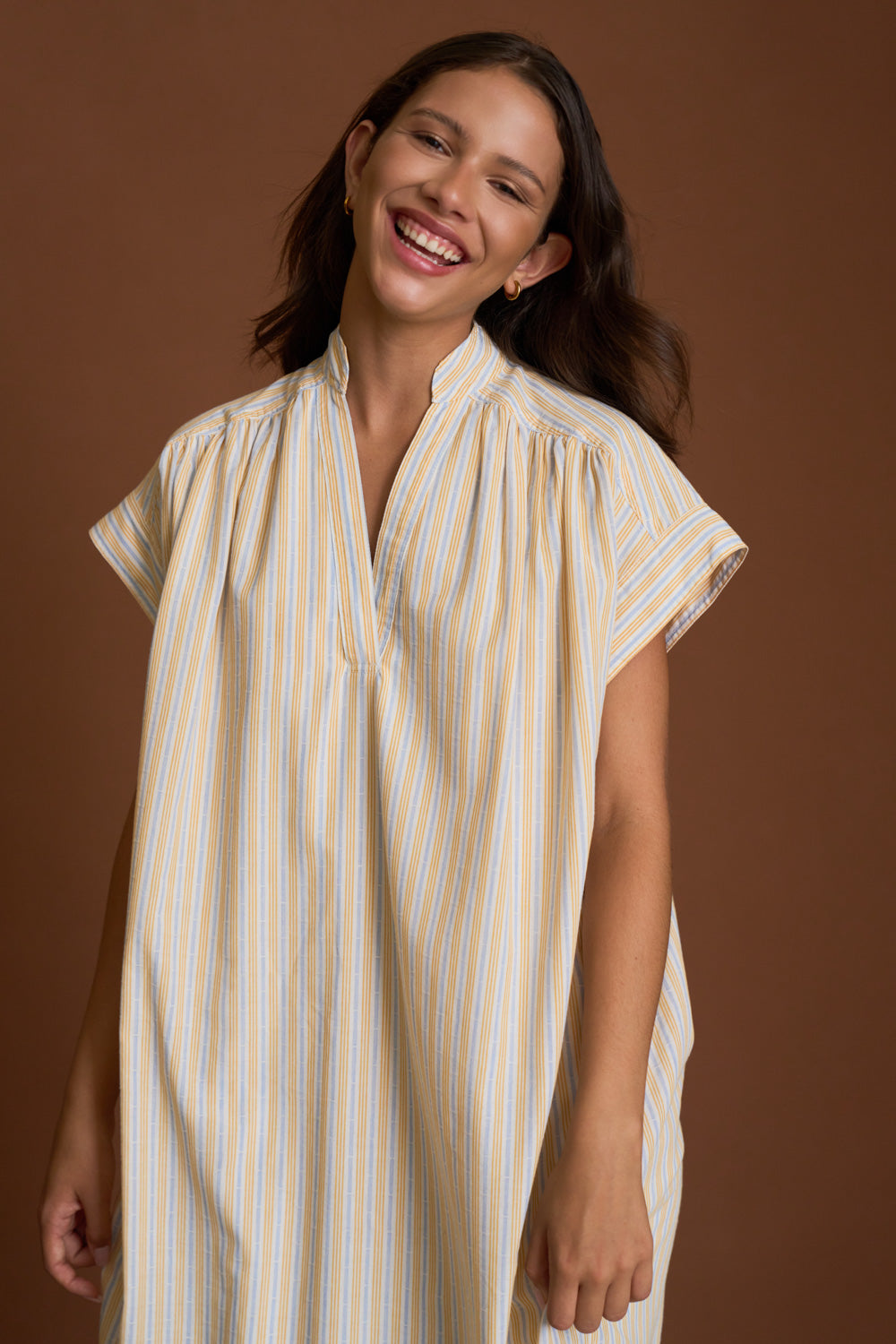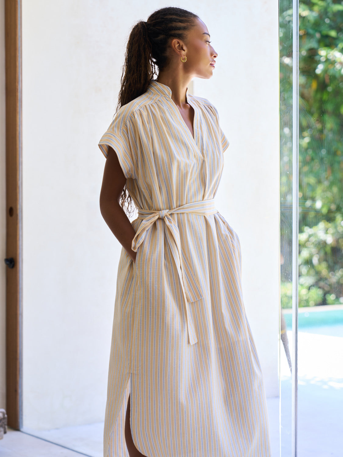 Mandarin V-Neck Kaftan Dress - Gardenia