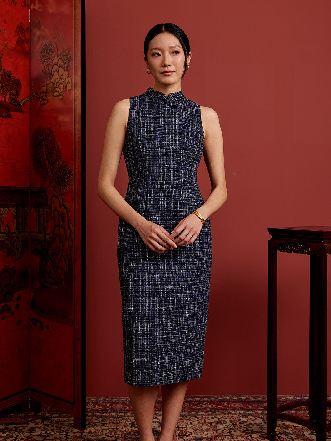 + Base cheongsam features a classic S-panel silhouette