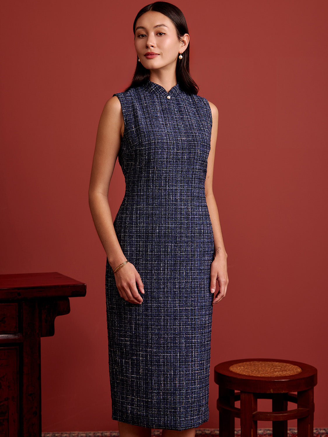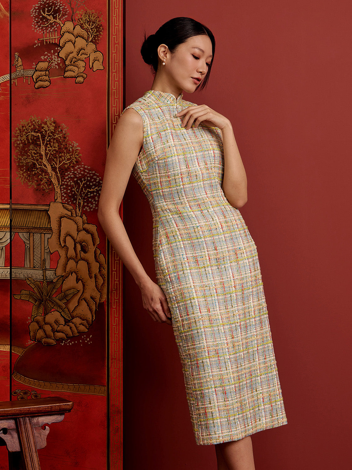 Padded Oval Open Back Cheongsam